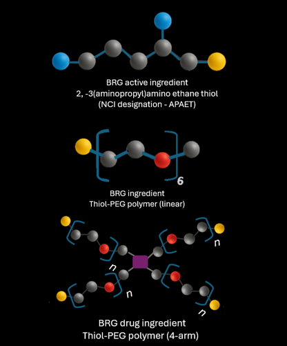 BRG drugs are a new family of therapeutic agents that, based on our preclinical study results, induce broad anticancer and antiviral effects.They deliver two ingredients:(1) 2, -3(aminopropyl)amino ethane thiol (NCI nomenclature - APAET)(2) a thiol-PEG polymer that can be varied for each BRG drugThe first active ingredient (APAET) is the active form of BRG drugs and also of an older FDA-approved drug that has reported, in the peer-reviewed literature, cell protective effects in normal cells and anticancer and antiviral effects in diseased cells.